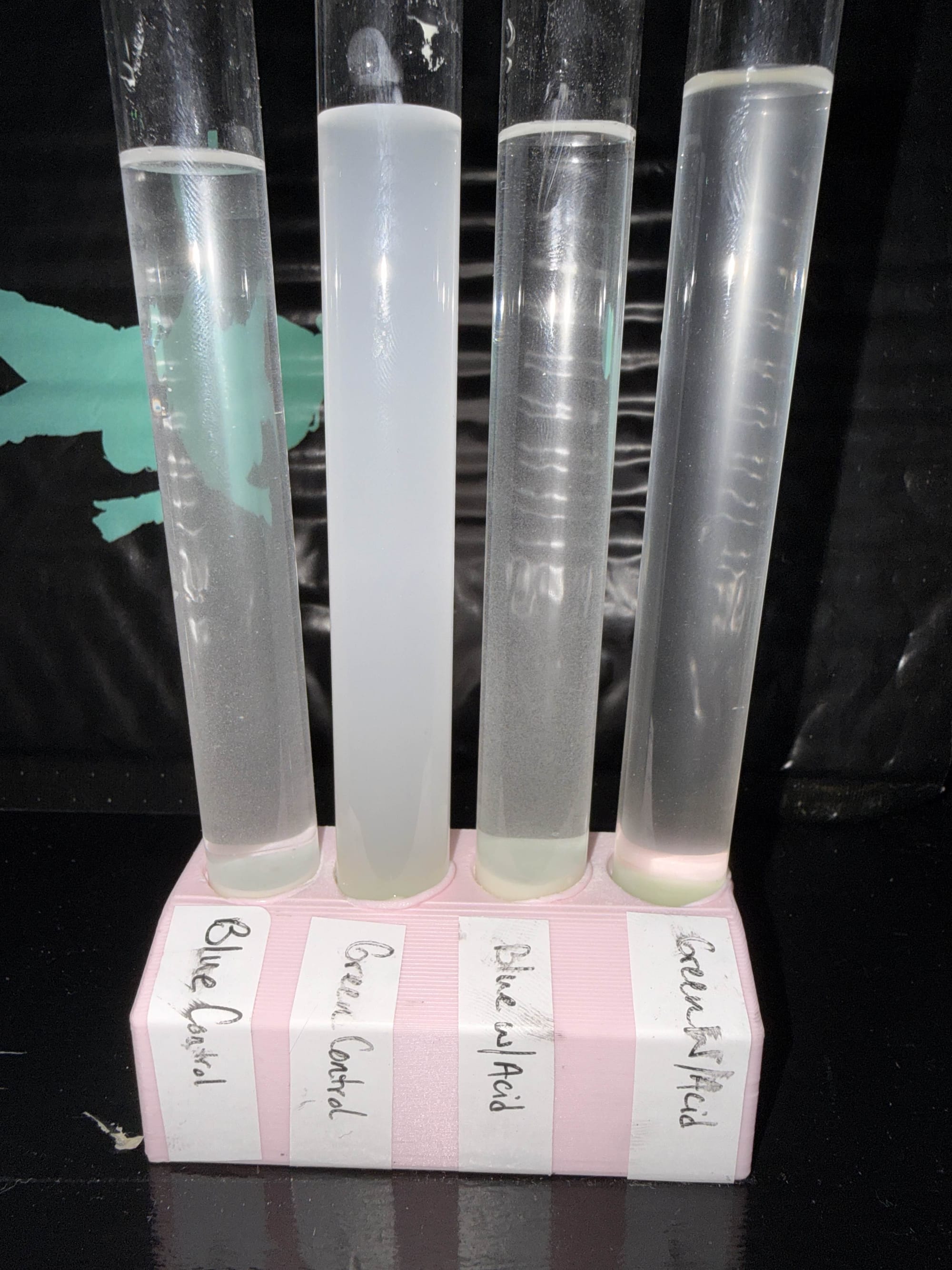 To further investigate, we allowed this mass to dry, then reintroduced it to pure distilled water. The mass began to dissolve back into the water. This suggests that the citric acid had reacted with the powder to form a salt (likely Calcium Citrate), which acted as a binding matrix for the mass. When placed back in water, that matrix dissolved.